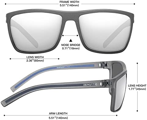 ZENOTTIC Polarized Sunglasses for Men Lightweight TR90 Frame UV400 Protection Square Sun Glasses