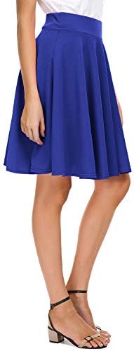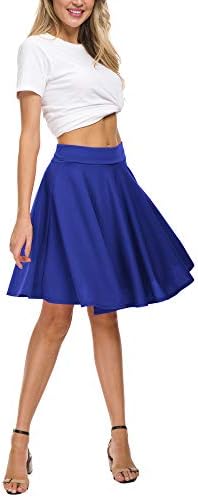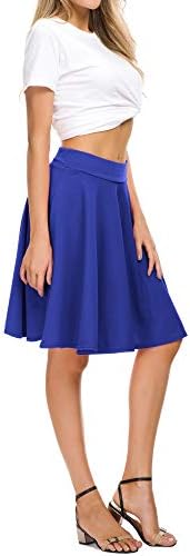 EXCHIC Women's Casual Stretchy Flared Mini Skater Skirt Basic A-Line Pleated Midi Skirt