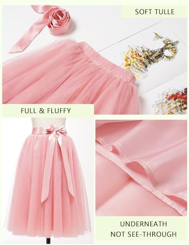 TULLE SKIRT FOR WOMEN:This women's knee-length tulle skirt is composed of 5 layers tulle and 1 layer satin lining,with one detachable satin sash. TUTU SKIRT FOR WOMEN:The high-quality tulle layer reflects the layering of the skirt, allowing the skirt to remain fluffy while showing your flexible and graceful figure.The satin underlining is soft,smooth,non-scratchy and comfortable. CASUAL/FORMAL SKIRTS FOR WOMEN:Simple,elegant and absolutely flattering,which is perfect as a modest church skirt or as a wedding guest skirt.In addition,it hung and swayed very nicely,which is super cute and fun,definitely popular in any party,prom,dance.Even as a work or daily life wear, it can also bring out your femininity. BRIDESMAID SKIRT:This tulle skirt is light and breathable, it won't make you feel hot even wearing it in summer.And it's a veritable all-match,can be styled in so many ways. IDEAL FOR All OCCASIONS:Photo Shoot,Church,Halloween Costume,Bridal Shower,Bachelorette Party,Disneyland Costume,Holiday Event,Fairy Skirt,Family Reunion,Wedding Guest,Concert,Party,Prom,Wedding,Tea Party,Birthday Skirt,Anniversary,Engagement Photo,Maternity Skirt,Cocktail Party,Date,Princess Skirt,Play,Dance performance,etc #38,673 in Clothing, Shoes & Jewelry ( ) #159 in