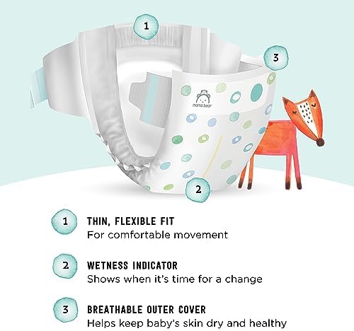 IN THE BOX: Mama Bear Gentle Touch Diapers for newborns; (4 packs of 30 diapers each, 120 total) HYPOALLERGENIC & PARABEN-FREE: Dermatologist tested and hypoallergenic for baby’s sensitive skin; Free of chlorine bleaching, perfumes, lotions, parabens, and phthalates LEAKAGE PROTECTION: Up to 12 hours of protection; Wetness Indicator shows when it’s time for a change COMFORT FIT: Thin design with flexible fit for comfortable movement BREATHEABLE COVER: Outer cover helps keep baby’s skin dry and healthy SIZING RECOMMENDATION: First-time users, consider getting the size your child currently wears; if the fit is snug, size up An Amazon brand; Bags contain 20% Post Consumer Recycled Materials #7 in Baby ( ) #3 in