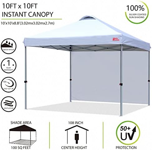 MASTERCANOPY Durable Pop-up Canopy Tent with 1 Sidewall (10'x10',White)