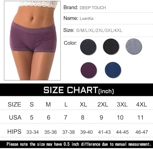 EXCELLENT FABRICS AND MATERIALS.High - quality elastic fabric for ultimate comfort,Protect and care for your skin.The crotch material is more soft and breathable, keep the whole day dry . No labels, no irritation to your skin EXQUISITE CRAFT.Boxer briefs tailored for ladies, with unique cut and seamless design, You can choose the right size according to your hip and waist circumference,It fits perfectly on a women's bottom and gives you the most comfortable feeling APPLICABLE SCENARIO.The seamless boyshort panties are perfect for home wear and you can think of them as pyjamas and yoga pants.When you wear the women’s underwear boyshort with jeans, they also give you the best comfort without strangling your thighs THE BEST GIFT FOR YOU.Our women’s shorts come in five different colors to suit your favour.You can choose the solid color elastic underwear you want according to your mood every day DURABILITY IS OUR STANDARD.You can dress and wash more frequently, but for your health, we recommend changing your underwear once every 3 months. If you have any problems, please be free to contact us and we will be happy to solute it for you #42,849 in Clothing, Shoes & Jewelry ( ) #63 in