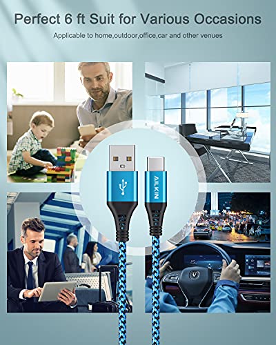 [4Pack/6FT] USB Type C to USB A Cable, 3A Fast Charging Long Android USBC Phone Power Charger Braided Cord for Samsung Galaxy S23 Ultra S22 S21 S20 A13 A53 iPhone 15 Pro Max Moto Android Type-C Cable
