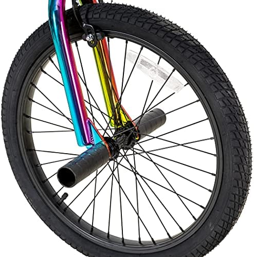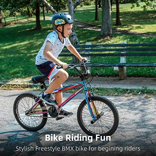 Freestyle & Color - With sleek gloss jelly paint, JOYSTAR Gemsbok is a stylish BMX style 20" kids bike that offers everything a beginning rider needs to hit the streets or bike park! It's an entry level bmx bike with standard 20” wheel size. Front pegs make it easy to try hops and tricks for boys and girls. Safer riding - 20 in kids bicycle with double hand brakes, front & rear caliper brakes provide more safety. Wide 2.125" pneumatic air tires add more stability, Sturdy steel frame and crank, Non-slip resin pedal, chainguard, front & rear reflectors and wheel reflectors. Easier to Ride - Your little ones will enjoy a smoother ride with Single speed drivetrain that features 130mm one-piece forged steel cranks with a 36T steel chainring and American loose ball bottom bracket. Brake lever allows little riders brake efficiently. Kickstand included. Easy Assembly - 85% of the bike is assembled. The front tire, the seat, pegs and handlebar need to be installed. Assembly tools included and it's easy to follow instructions. This boys and girls bike also come with timely customer service and also limited lifetime warranty. 20 Inch BMX Bikes - The Gemsbok bmx bike is ready to take on the sidewalk, dirt track, or park. Special Oil slick color for cool riding. Suggested rider height is 4'0"– 5'8" (ages 7+ years). Use our sizing chart and you will find the perfect size for your kids.