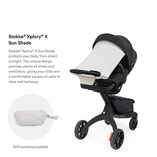 Stokke Xplory X Sun Shade, Light Grey - Protects Baby from Direct Sunlight - Lightweight, Easy to Attach to Stroller - Made with Water-Repellent Materials & UPF 50+ Fabrics