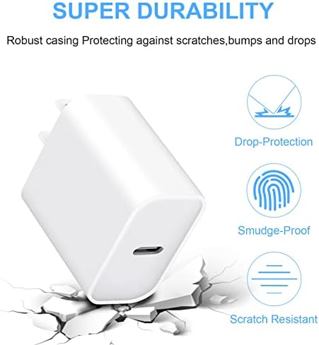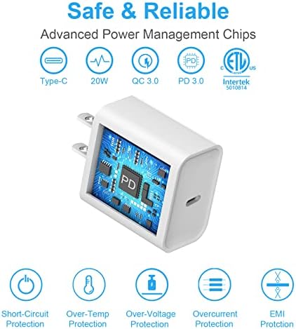 [20W Fast Charger Adapter] iPhone Fast Charger equipped with 20W PD 3.0 USB Type C power delivery wall plug, PD 3.0 Quick-Charge USB C port provides Max 20W output power, charge your device up to 3x faster than original 5W charger,charging your iPhone 15 up to 50% in just 30 minutes, saving over 1.5hrs for you. [Wide Compatibility] Fast charge your iPhone 15/15 Pro/15 Pro Max/15 Plus/14/14 Pro/14 Pro Max/14 Plus/ 13 / 13 Mini / 13 Pro / 13 Pro Max / 12 / 12 Mini / 12 Pro / 12 Pro Max, iPhone SE, iPhone 11 / 11 Pro / 11 Pro Max, iPhone XS / XS Max / XR / X, iPad Pro 12.9 / 11 / iPad Air 3 / iPad Mini(2019), Google Pixel 7/ 6/ 5/ 4 / 4 XL / 3 / 3 XL / 2 / 2 XL, Galaxy S22/S21/ S20/ S10 / S10+ / S10e / S9 / S9+ / S8 / S8+ / Note 10 or other devices that support USB Power Delivery. [Safety Protection] Suitable for the U.S. and the World electrical standards, It has ETL(US),FCC,CE,ROHS,certificated, The shell is made of high quality ABS material, heat resistance and low temperature resistance, chemical resistance and excellent electrical properties. The Charger Internal High Quality Chips Protect Your Devices from over Heating, Short-circuiting and over Charging. [Compact & Lightweight] Extremely compact size & travel-friendly design fits into your pocket or bag easily without occupying too much space and ensures incredible portability wherever you go. Handy for home, office, and vacations [What You Get] ROMITAZ 20W USB C Power Delivery Charger - 2PACK. worry-free 12-month warranty and 24/7 customer service, life time technical support.
