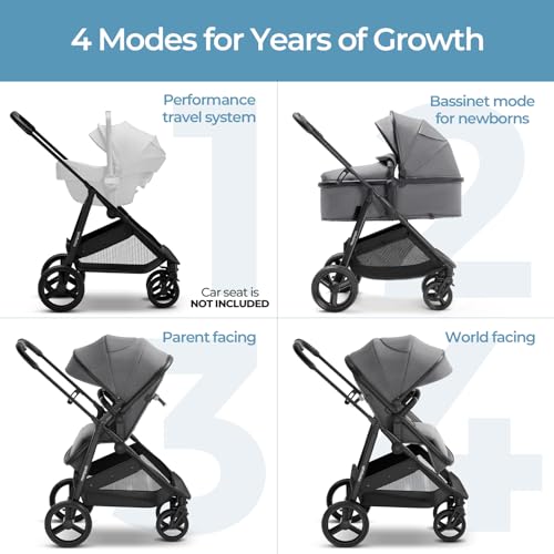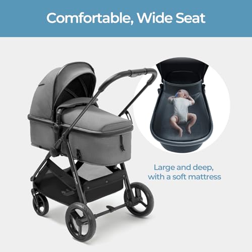 Mompush Wiz 2-in-1 Convertible Baby Stroller with Bassinet Mode - Foldable Infant Stroller to Explore More as a Family - Toddler Stroller with Reversible Stroller Seat