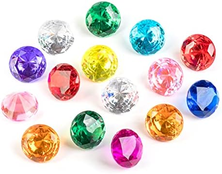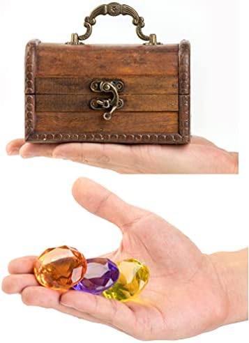 PUBGAMER Diving Gem Pool Toy 15 Big Colorful Diamond Set with Big Treasure Chest Pirate Box Underwater Gem Diving Dive Throw Toy Set Swimming Training Gift Toy