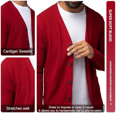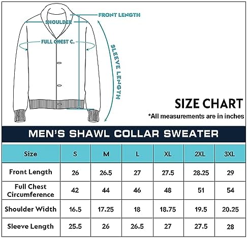 COMFORT: This Mens Sweater Features an Ultra Soft Feel, Long Sleeve & Ribbed Cuffs To Keep In The Warmth, Midweight, Elegant Feel. QUALITY: This Cardigan Men Is Constructed Of Highly Durable Materials So You Can Work Or Play Hard And Quality Will Stay As Good As New Even After Many Washes. Ultra Soft Fibers Will Not Deteriorate STYLE: Shawl Collar Button Down Men Cardigan Detail Easy To Pair Up Dressy Or Casual. Button Closure With Long Sleeves. Ribbing On Cuffs & Waistline, Cable Knitted Accent. FIT: Classic Fit Mens Cardigan Sweater, Ribbed Cuffs And Waistline. Ultra Comfortable Soft Blend Of Fabrics Standard Length Rests A Bit Below Waist For Maximum Comfort. Elegant Stylish Look OCCASION: This Cardigan Men Has Versatile Style, Pair With Jeans, A Blazer and Dress Pants, Dress Shirt,Many More Items. Great For Work, A Casual Night Out, Party, Or Just Relaxing At Home. #170,222 in Clothing, Shoes & Jewelry ( ) #41 in