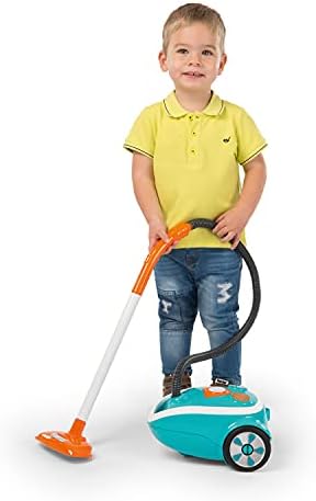 Smoby Cleaning Trolley - Toy Vacuum Cleaner with Realistic Lights & Suction Sounds - Toddler Broom, Mop, Brush, Dustpan, Bucket, Toy Empty Packaging, Kids Real Cleaner Pretend Play Set, Age 3+
