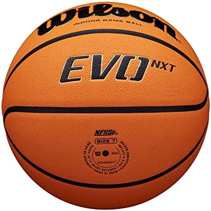 100% Composite Leather Imported WILSON NCAA Evo NXT Indoor Game Basketball - Size 6 - 28.5" Extended Range Tech: Optimally balanced, super soft core construction generates more spin with less effort at any range and a softer touch around the rim. Micro-Touch Composite Leather: A Micro-Touch Cover provides an extra layer of grip and moisture management. Super Soft Core: Extra cushioning allows your fingers to dig deeper into the surface for better control and a softer feel, helping every player find the shooters touch. Composite Pebbled Channels: Composite channels are pebbled instead of smooth, creating a consistent texture over the entire surface of the ball for unparalleled control.