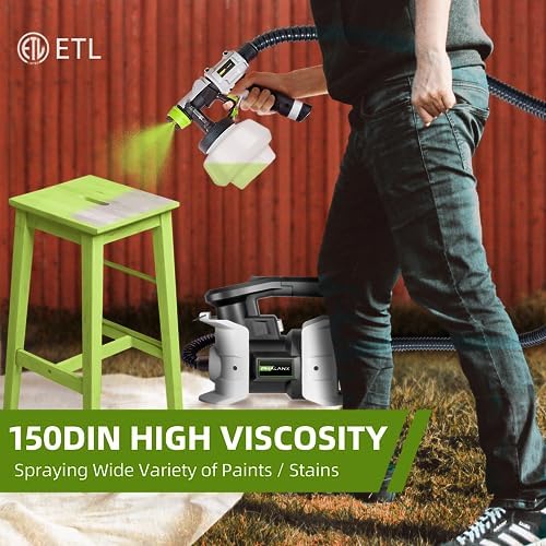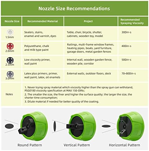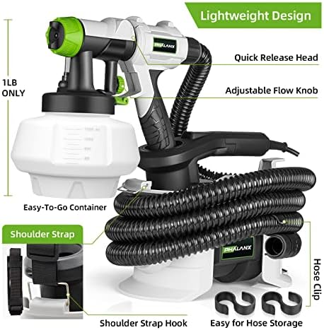 【High Speed HVLP Spray Paint Gun】PHALANX 700W spray painter is equipped with a high speed motor and powerful turbo fan, which makes it paint faster, smoother and even, greatly improving the painting quality. 【150DIN High Viscosity】This electric paint gun adopts 150DIN viscosity, making it suitable for most paints. This powerful spray-painting gun can ensure that you can finish all kinds of painting projects quickly and smoothly. Great for home improvement and DIY lovers. 【Lightweight Design & 10FT Flexible Air Hose】The body separation design makes the spray gun only weigh 1LB, which greatly relieves the pressure on arm and hand. Lengthened hose makes the painting range up to 780FT². Ideal for beginners. 【4 Nozzles & 3 Patterns】4 nozzles (1.5mm/2.0mm/2.5mm/3.0mm) can meet different painting requirements! By adjusting the air cup, 3 painting patterns can be obtained to finish your project. Air flow knob can adjust the flow to realize accurate output and save materials. 【ETL Certified & Warranty】It has ETL certification from the authoritative organization to ensure product quality and safety. And it also has 30 days UNCONDITIONAL return. Any questions, contact [[email protected]] or call me at (+1)8772199866.