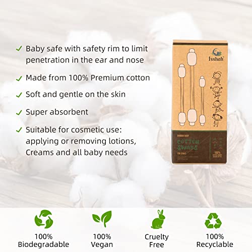 Baby Cotton Swabs - 108 Count - Bamboo Handle Cotton Tips, 100% Biodegradable, Gentle, Eco Friendly, Double Tips, Plastic Free Safety Baby Cotton Buds by Isshah