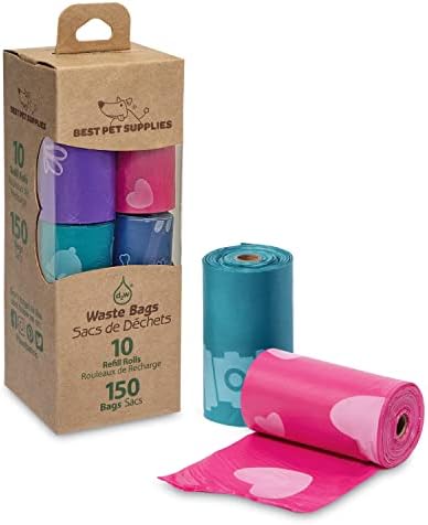 Best Pet Supplies Dog Poop Bags for Waste (150 Bags) Refuse Cleanup, Doggy Roll Replacements for Outdoor Puppy Walking and Travel, Leak Proof and Tear Resistant, Thick Plastic - Assorted Colors