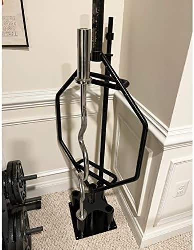 Holds up to 5 bars with diameter of 1" and 2" :Bar hole diameter: 2". Dimensions: 12"x12". Height: 6". The holder can hold 5 pc bars.Noted bolt it on the floor to prevent falling over. Vertical barbell holder floor stand :Our weight bar holder is constructed of heavy gauge steel for strength and stability, heavy duty bottom keeps the bars straight and upright. Black powder coating finish features scratch proof and rust resistant, all for a long time use. Barbell Storage Holder: Are you still worried that the barbell rack can't be found or takes up space? Our Barbell storage Holder is a great idea for anyone who's looking for a bar holder that layout takes up little space. Its compact design helps organize the messy barbells bars, make you enjoy a tidy exercise environment. SturdyPowder Coated:This barbell holder with premium coating, Scratch resistant friction resistant, protects its structure from scratches. Package including: 1 piece of heavy duty barbell storage rack. (mounting hardware included-screews)