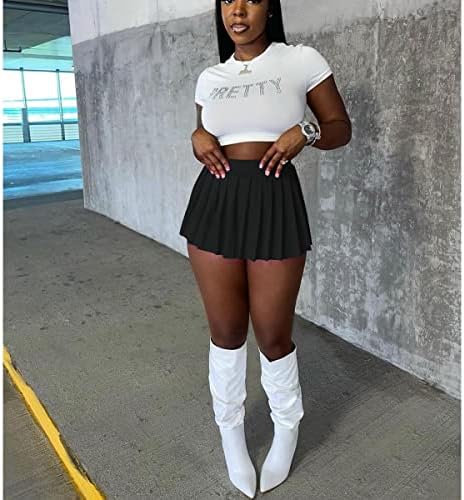 Women's Mini Pleated Skirts Sexy Club Y2k High Wiast Stretchy Tennis Skater A-line Skirt
