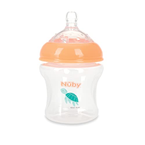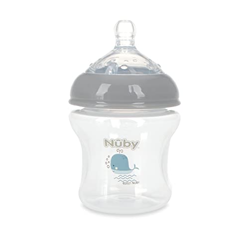 The 3-pack set of 6 oz bottles come with super soft, slow flow breast size nipples which are inspired by the shape, texture & natural flex of Mom's breast which encourages babies to latch-on more easily for a less stressful & happier feeding time. The bottle nipples have 3 unique advanced anti-colic valves which reduce air intake to help prevent painful colic & gas when your little one's feeding. The wide neck baby bottle, it's easy to fill and clean, has a leak-proof sealing ring and its natural shape makes it easy to hold with textured side grips to help too. The 3-pack set of 6 oz bottles have delicate whale, jellyfish, and turtle prints. BPA FREE, 0 months +, 6 oz, 3pk set: jellyfish, whale, turtle prints, dishwasher safe