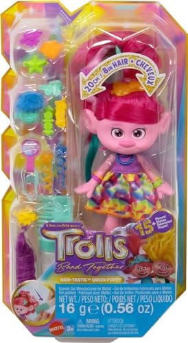 Mattel DreamWorks Trolls Band Together Doll & 15+ Accessories, Hair-tastic Queen Poppy Fashion Doll with Glitter Comb