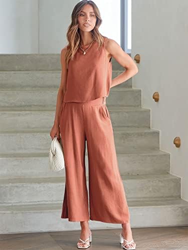 Size - Choose the perfect fit from S=US(2-4), M=US(6-8), L=US(10-12), XL=US(14-16),XXL=US(18-20). For detailed size information, check our rich description Features - This 2 piece outfit features a sleeveless round neck crop top, wide-leg cropped pants, button back, high waist, and a wide waistband for added comfort. Occasion - From summer parties to casual tourism, this trendy two-piece outfit is perfect for every occasion. Make it a must-have for your daily wear, weekend family parties, and vacations. Stylish Outfit Set - Embrace effortless style with this set that combines perfect length and high-quality lightweight fabrics for a comfortable experience all day long. With a cozy elastic waist, it's perfect for any occasion, from everyday wear to lounging or even beach vacations and workouts! Washing - Dry clean recommended to avoid shrunk.