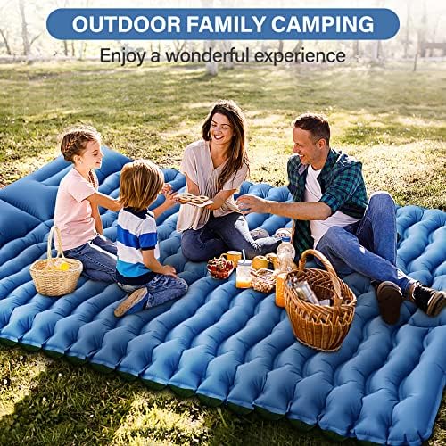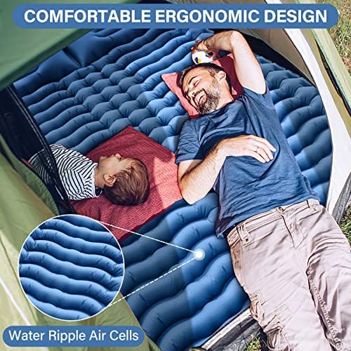Double Sleeping Pad - Self Inflating 4" Extra-Thick For 2 Person with Pillow Built-in Foot Pump Inflatable Sleeping Mat for Backpacking, Hiking, Traveling, Tent, Portable Camping Mat