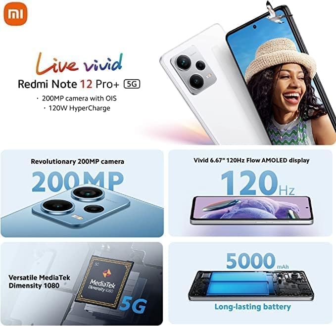 Factory unlocked for all GSM carriers like T-Mobile, AT&T, MetroPCS, etc. in the USA Powerful MediaTek Dimensity 1080 6nm chipset provides fast 5G connectivity and smooth performance Massive 6.67" AMOLED display with 2400 x 1080 FHD+ resolution and up to 120Hz refresh rate 200MP main camera, 8MP ultrawide, and 2MP macro camera with up to 8K video recording Large 4980mAh battery charges rapidly with included 120W wired charger Dual SIM slots with 256GB storage and 8GB RAM Slim and lightweight design with side fingerprint sensor and face unlock