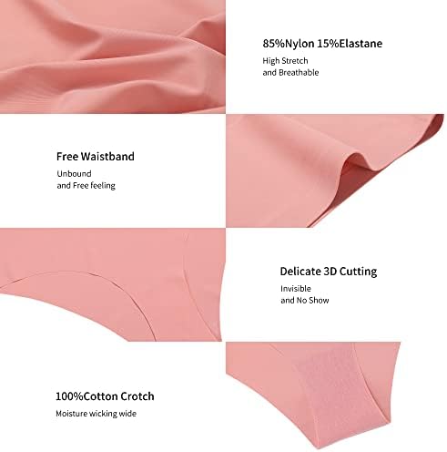 【Seamless Underwear】✿Laser cut on fabric creates no show invisible panties with no visible panties line(No VPL). Seamless sides for a smooth look under clothes and invisible no show under pants, leggings, or dresses. This cheeky bikini is perfect for daily wear 【Comfort Stretchy Breathable】✿Premium Soft stretchy healthy fabric no rolling or no slipping, with no compression but perfectly comfortable. Super soft and breathable fabric offer buttery soft feeling. Low rise and nylon materials provides the sexy looks 【100% Natural COTTON CROTCH】✿100% cotton wide breathable double layer crotch for added protection, moisture wicking, sweat wicking, breathable and healthy. Suitable for bedtime, home, office, workout and everyday use 【Fashion Style Design】✿Low waist and cheeky bikini design with moderate back coverage perfectly show your sexy and charming bottom shape. Multiple colors make it easier to pair with your bra 【Laundry Tips】✿Recommend hand wash with cold water and hung to dry. No bleach, or the colors will run! Customer Satisfaction Guaranteed: If you receive the Wrong Size or Defective Product, please feel free to contact us. 30 days money back guaranteed