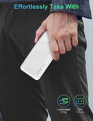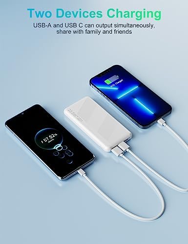 Portable Charger Small and Slim: Compact 10000mAh power bank, weight only 210g and 16mm thickness, grip on hand or put into your bag easily, this portable charger is excellent for international travelling or outdoor activities, take on plane or train. Note: Charge for Phone 15 series need specified cord. Battery Pack with High Speed: The charging bank has USB-C 20W bidirectional fast charging, charge your iPhone 12 Pro from 0% to 100% within 45 minutes. the USB-A provide 22.5W power delivery for iPhone, Samsung, LG, Sony, Motorola, Nokia cell phone and more. Charge with Confidence: Portable battery charger adapt the premium lithium polymer battery cell, ABS plastic shell, built-in intelligent current IC, multi protect system keep your phone running smoothly, this battery bank can charge your iPhone 8 3.5 times, Samsung S21 2 times. Dual Inputs: You can recharge this external battery through the Micro USB or USB-C, can fully refill the battery by the 10W Micro cord in 5 hours, just need 3.5 hours by the above 20W USB C charge cord, always have a full energy external charger, not lack of electricity during working or vacation. What You Get: 2x 10000mAh phone power bank, 2x Type-C charge cord, 1x user manual. We provide 7 day 24 hours promptly customer support, your satisfaction is our desirable goal. hope our portable charger power bank can bring you an joyful experience, have a nice day!