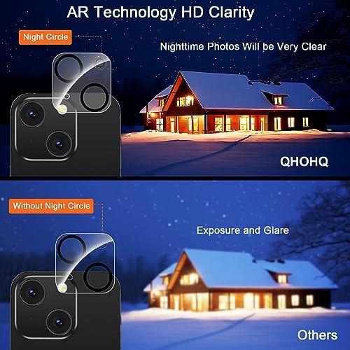 [Applicable Models]: The screen protector tempered glass and camera lens protector are only applicable for the iPhone 15 6.1 Inch version. They are made of high-quality 0.33mm thick tempered glass with a hardness of 9H grade or more, which has been strengthened at 800 degrees celsius to prevent shattered edges, scratches, and explosions. The iPhone 15 screen protector glass also features a 2.5D rounded edge design, which is touch smooth and won't scratch your hands. [Special Note]: Due to the rounded design of the iPhone 15 and to enhance compatibility with most cases, QHOHQ designed the tempered glass screen protector does not cover the entire screen, only the flat area. [Ultra Thin and Ultra HD Design]: 0.33mm ultra-thin tempered glass with super quick-launch application, maintain the same responsiveness and touch experience as a naked phone. It also ensure 99% retention of the original ultra HD picture quality. The surface of the iPhone 15 protective film is treated with a plasma oil repellent coating, effectively preventing fingerprints caused by sweat and oil stains and improving the visibility of the screen, thereby keeping the screen as clean as new. [Easy Installation]: The screen protector iPhone 15 designed by QHOHQ comes with a simple installation frame that makes it very easy to align the tempered glass with your phone screen and will not leave any bubbles. Enjoy your screen as if the protector de pantalla doesn't even exist. Please watch our installation video tutorial before installing. [AR Technology and Night Shooting Function]: The specially designed for the iPhone 15 camera lens protector incorporates the latest AR-enhanced "seamless" fusion technology, which enhances light transmittance and improves the quality of photos and videos. The camera cover upgrades the "Night Shot Circle" feature to maintain the original quality of photos and videos even when the flash is turned on at night.