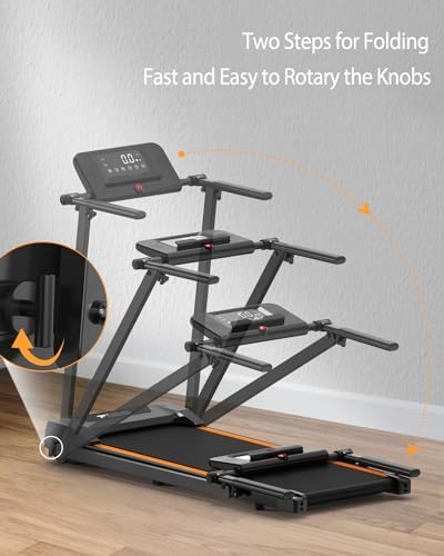 Innovative Walking Treadmill for Home: 2024 Updated under desk treadmill that arrives fully assembled and ready to exercise. TODO folding treadmill has 12 different HIIT running modes. With the help of these preset training plans, you can choose the best to suit your needs. You can also track your exercise data, such as speed, time, distance, and calories clearly with an adjustable LCD screen. Easy to fold for Space Save: Folding it in only two steps! The folding size is 48”x 22.5”x 5.4” (L x W x H). The compact design makes it easy to fit in your home or office and jump on for a quick workout. TODO folding treadmill is smaller & and more convenient and weighs only 51.24 lbs. Powerful and Ultra-quiet Makes Running Like Outdoors: 2.25 HP Motor provides speeds of 0.5-5 MPH which guarantees the stable operation of the machine with 242 LBS weight capacity. The motor runs quietly and will never disturb other people. Makes running like outdoors. Larger Running Area Everyone: 5-layer widened tread belt (15.3"x41") that allows you to walk, jog or run more freely. Not just an ordinary treadmill, but a treadmill for your pets, which means your beloved puppy can get fit on TODO folding treadmill too. 100% Satisfaction & Awesome Service: TODO is committed to providing every customer best possible experience and guaranteeing your satisfaction. Our team is ALWAYS ONLINE and ready to help you with any questions you may have.