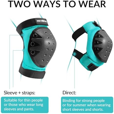STURDY & PROTACTIVE MATERIAL Made of sturdy, soft EVA padding and tough plastic sheeting, with longer and larger pads and multiple layers of protection to ensure safety during sports and games. EASY TO CARRY The 6-in-1 protective set includes knee pads, elbow pads, and wrist guards. The protective gear set can be carried in a mesh bag when playing sports indoors or outdoors. It can be taken anywhere due to the lightweight and convenience. TWO WAYS TO WEAR Adjustable Velcro and elastic bands provide two ways of wearing. Direct binding for strong people or for summer when wearing short sleeves and shorts.Sleeves + straps. Suitable for thin people or wear long sleeves and pants. FIT FOR MULTIPLE SPORTING The protective gear set can be used with roller skating, skateboarding, cycling, scooter and various action outdoor sports to provide you with protection. To prevent the protective gear from falling off and shifting during exercise, please make sure that each part is worn correctly. COMFORTABLE AND BREATHABLE Double-sided twill elastic is adjustable for secure comfort at the knees, elbows and wrists. And breathable fabric keeps them dry and fresh and reduces sweating during hours of skating.