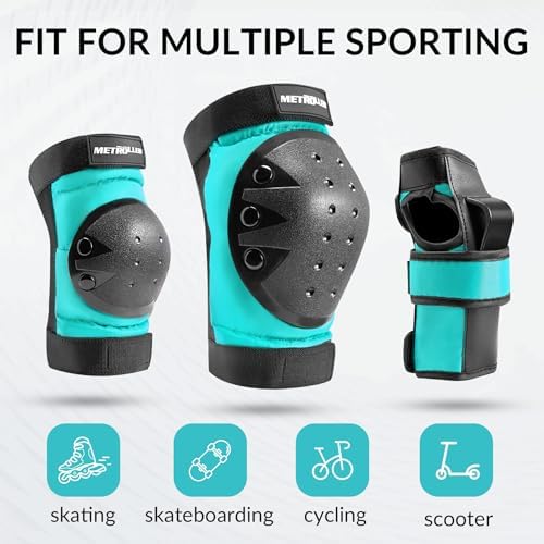 METROLLER Adult & Kids Protective Gear Set for Men, Women Youth Knee Pads, Elbow Pads & Wrist Guards 3 in 1 for Skateboarding Multi-Sports Protective Gear