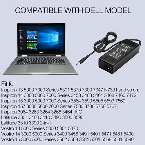90W AC Adapter for Dell Inspiron 14 15 16 Series-for Dell Inspiron 15 3000 3520 5000 Charger-for Dell Inspiron 11 13 17 Latitude 3540 Vostro 13 14 15-for Dell Inspiron 17 5000