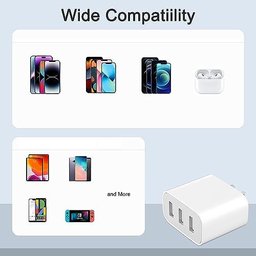 【3-USB Charging Ports】USB wall charger block is designed with 3 USB ports in one cube, allowing you to charge multiple devices simultaneously. Whether you need to charge your smartphone, tablet, smartwatch, or other USB-powered devices, eliminating the need for multiple chargers. 【Universal Compatibility】This is a 3-port USB charging cube that works universally for nearly all devices. The usb wall plug is compatible with iPhone 14/13/12/11 Pro Max, Mini, SE, XR, XS MAX, XS, X, 8 Plus, iPad Pro, iPad Air, iPad mini, Samsung Galaxy and more USB-ported devices. 【Fast Efficient Charging】USB charger block delivers an even output: 2.1A 5V, which ensure a fast and efficient charging to your devices. Not only saves your charging time, but always ensuring that you have a fully charged device. 【Pack of 3 & Portable】You are getting 3pcs USB power adapters, so you can bring one in office, one at home and one for travel. It’s lightweight and compact, which can be easily carried in a bag or pocket, allowing you to take it with you wherever you go. 【Reliable Quality & Safety】The wall chargers with ports are well built for long lasting service. Protecting your devices from overcharging, overheating, and short circuits. Let you rest assured that your devices being charged safely. Any issues during charging, please don’t hesitate to contact us for satisfactory solution.