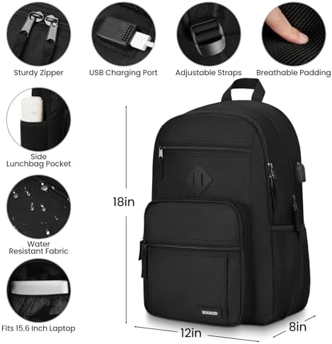 BIKROD Backpack for Men and Women, Lightweight Casual School Backpack for Teens Boys and Girls, Daily-use Travel Laptop Backpack with USB Charging Port Fits 15.6 Inch Notebook, High School Bookbag