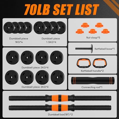 【4-In-1 Multi-Function Modes】With The FIXTECH Adjustable Dumbbell Set, you can get a pair of dumbbells also barbells, kettlebells and push-up stands, which help you do many exercises including bench presses, squats. It can make it easy for you to exercise at home or in the office, as well as during the trip. 【Full Body Training】 You can adjust the weight of the dumbbell in accordance with your needs. The dumbbell is equipped with a connecting rod. You can turn it into barbells within seconds, which can meet the exercise needs of the upper and lower limbs. You can do anything you would do with dumbbells- bench presses, curls, shoulder presses, triceps extensions, lunges, rows, flies, etc. It helps train and strengthen your quads, biceps, glutes, triceps, buttocks, abs, legs, and knees. 【Ergonomically Designed for Optimal Comfort】The PP material coasted steel dumbbell handle designed with anti-slip texture to provides you a comfortable & secure grip. The 30 mm thickened barbell connector is ergonomically designed to have a curvy shape that fits your neck perfectly for increased comfort. Rubber kettlebell handle delivers exceptional control and is slip resistant even with sweaty hands. 【Upgraded Spinlock Collars, Safety Guaranteed】The anti-slip tightening collar ensures a safe and secure fit to the dumbbell or barbell bar. No worries with it loosening or plates sliding/falling. Smooth contoured finger tip grips ensure quick and easy mode switching. 【Brand Support】FIXTECH always due to providing our customers with the best service. If our product could not meet your expectations, please feel free to contact us, we will respond within 12 hours. 【What you get】4 pcs of 1KG(2.2Lbs) Weight,4 pcs of 1.5KG (3.3 Lbs), 4 pcs of 3KG (6.6 Lbs), 18.5'' Dumbbell stick * 2, 15'' Connector * 1, Push -up handle * 2, Kettlebell bar * 1, Screw nut * 5.