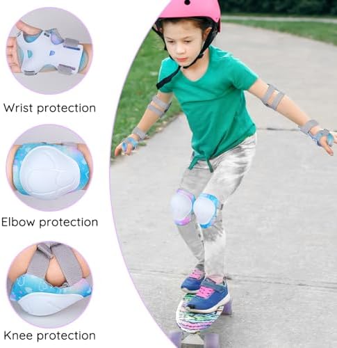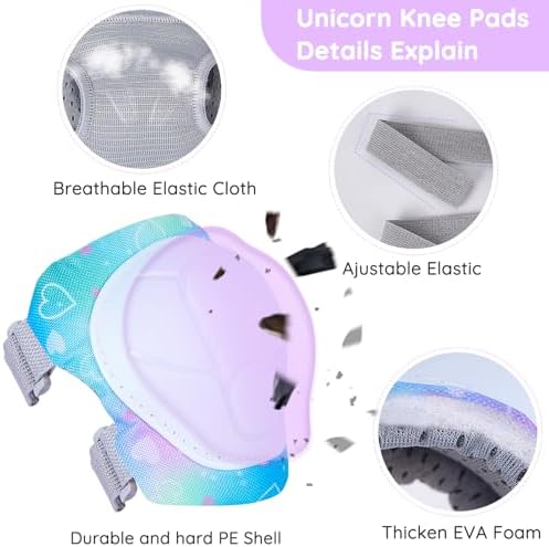 Bienbee Knee Pads for Kids Unicorn 7 Pcs Knee and Elbow Pads Wrist Guards for Girls Boys Protective Gear Set with Bag for Roller Skating Inline Skates Skateboard Cycling