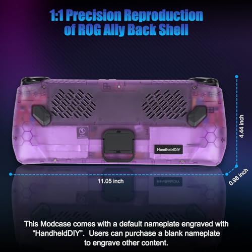Cooling Modcase for ROG Ally, ROG Ally Back Plate Accessories Heat Management Shell Case Compatible with ASUS ROG Ally, Easy Installation with Foldable Kickstand, and Custom Nameplate (Purple)