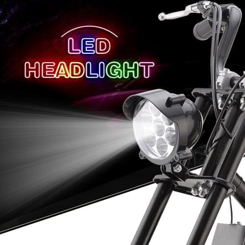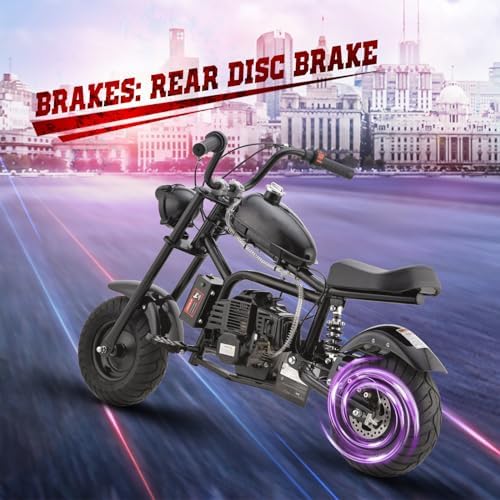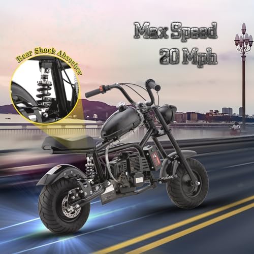 HOVER HEART Gas Mini Chopper Bike, DB003 Model 49.4 CC 2-Stroke Dirt Bike with Big Headlight, Rear Shock Absorber, Metal Frame, Disc Brakes, Max Load 165Lbs, Up to 20Mph, EPA Approved