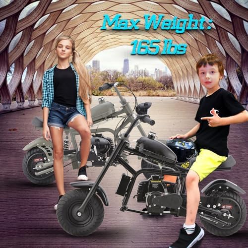 Key information: bike dimensions 49.21"L x 26.18"W x 29.53"H, Net weight 50.71lb, handle bar accembling required, Oil mix required( Read detail in Manual ), Pull Start, Handle throttle, pressure air tires. Rider can experience the speed of it, but safety power with the 49 cc 2-stroke engine and fully automatic chain transmission system. Maximum speed will be 20 mph for this dirt bike Mini dirt bike provides easy pull start operations, and kids can start the 49cc dirt bike up easily. Low-pressure pneumatic tires provide soft & smooth ride. the gas powered dirt bike for kids provides easy pull start operations, and kids can start the 49cc dirt bike up easily. Low-pressure pneumatic tires provide soft & smooth ride. EPA Approved, it means the kid's dirt bike will not cause unreasonable adverse effects in users’ health under the instruction manual, and it’s environmentally and it has low noise.