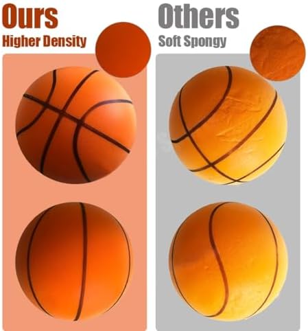 【Dribble Dream Silent Basketball】The silent basketball dribbling indoor introduces a unique foaming technology that ensures a completely silent playing experience, making it perfect for sensitive indoor environments. This technology can also enhance elasticity, but the bouncing ability of this kind of basketball will be slightly lower than that of a real rubber basketball, reaching 90% of the elasticity of a rubber basketball. 【High quality 】Our silent basketball is made of high quality foam, which is comfortable, super soft, easy to grip, and won't damage your furniture when playing. And there is no need for extra inflation, no need to worry about air leakage. 【Lightweight and Noiseless】Hush handle silent foam ball has countless tiny holes to absorb the sound caused, the sound in in the ball body gradually disappeared, play the role of silent, silent ball is very light, in the movement will not really knock over things, and will not cause any injury. 【Indoor Basketball Activities】Perfect for training, practice, and recreational games, this easy-to-grip handleshh silent basketball provides a safe and enjoyable experience. You can enjoy a peaceful game of basketball with this silent indoor basketball. It also helps to improve overall basketball skills. 【Perfect Gift】If you want to keep your kids away from computer and phone games and get them playing sports more, but are afraid they are making too much noise or getting injured while playing sports,without a doubt, Silent Basketball Dribbling Indoor is your best gift choice.