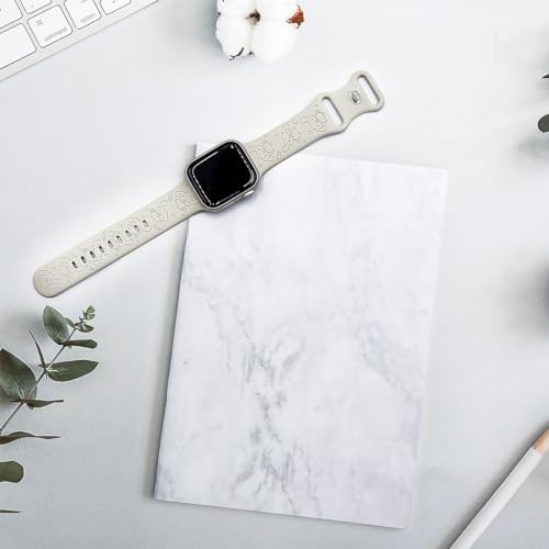 【Unique Cartoon Engraved】 The strap is engraved with cute cartoon patterns, Various patterns match different colors make your iwatch unique in any occasions. A great choice of gift to women, girls. 【Premium Material】The cute engraved apple watch bands made of persistent and premium soft silicone material, lightweight, skin-friendly, smooth surface, no irritation to the skin, also sweat & water resistant. The super soft silicone is great for leisure and sports, It is the best choice for your work and life. 【Perfect Fit】These cute cartoon engraving bands have two sizes for you to choose from. S (38mm/40mm/41mm) size fits 5.1"-7.5"(130mm-190mm) wrist; L (42mm/44mm/45mm/49mm) size fits 5.1" - 7.8" (130mm-200mm) wrist. The adjustable clasp made it suitable for most wrist sizes. 【Compatible Models】Our cute engraved replacement bands are compatible with apple watch 38mm 40mm 41mm 42mm 44mm 45mm 49mm, suitable for apple watch ultra, apple watch SE, iwatch series 9, series 8, series 7, series 6, series 5, series 4, series 3, series 2, series 1, all versions. 【Easy Installation & Removal】Our apple watch bands comes with watch lugs on both ends, which locks onto your Apple Watch interface precisely and securely. Easy and direct installation and one button removal. #17,481 in Cell Phones & Accessories ( ) #1,706 in